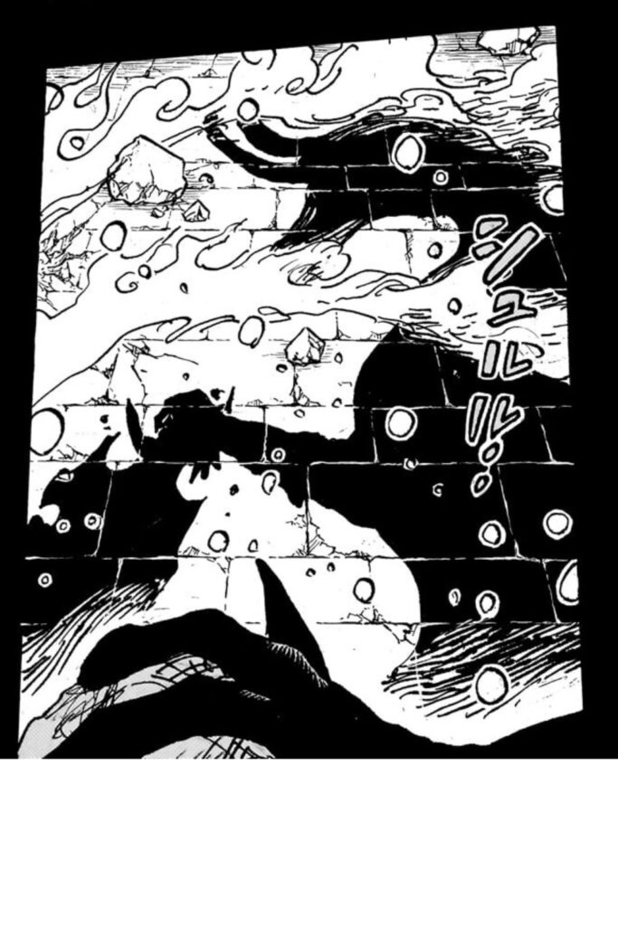 片足が海楼石の錠につながっているロキが、鉄雷でエルバフに攻撃
